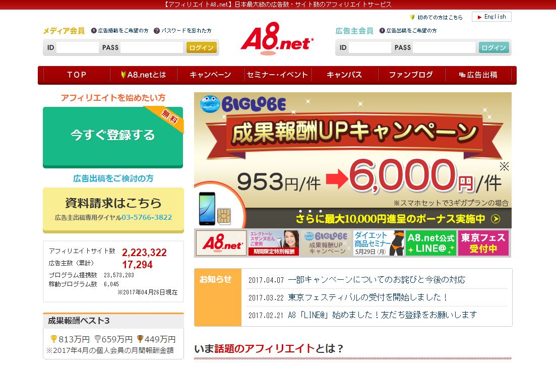 | サイトURL | https://www.a8.net/ |