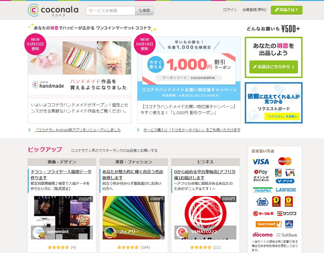 | サイト名 | ココナラ – あなたの得意でハッピーが広がるワンコインマーケット |