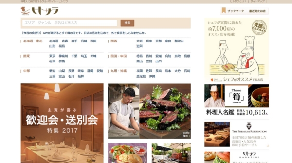 | サイト名 | ヒトサラ – 料理人の顔が見えるグルメサイト |