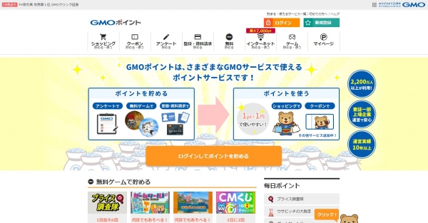| サイト内容 | GMOポイントはインターネット上の共通ポイント。無料で遊べるゲームやアンケートなどで、簡単にポイントを貯めることができます。貯めたポイントは15,000店以上の加盟店で使うことができます。 |