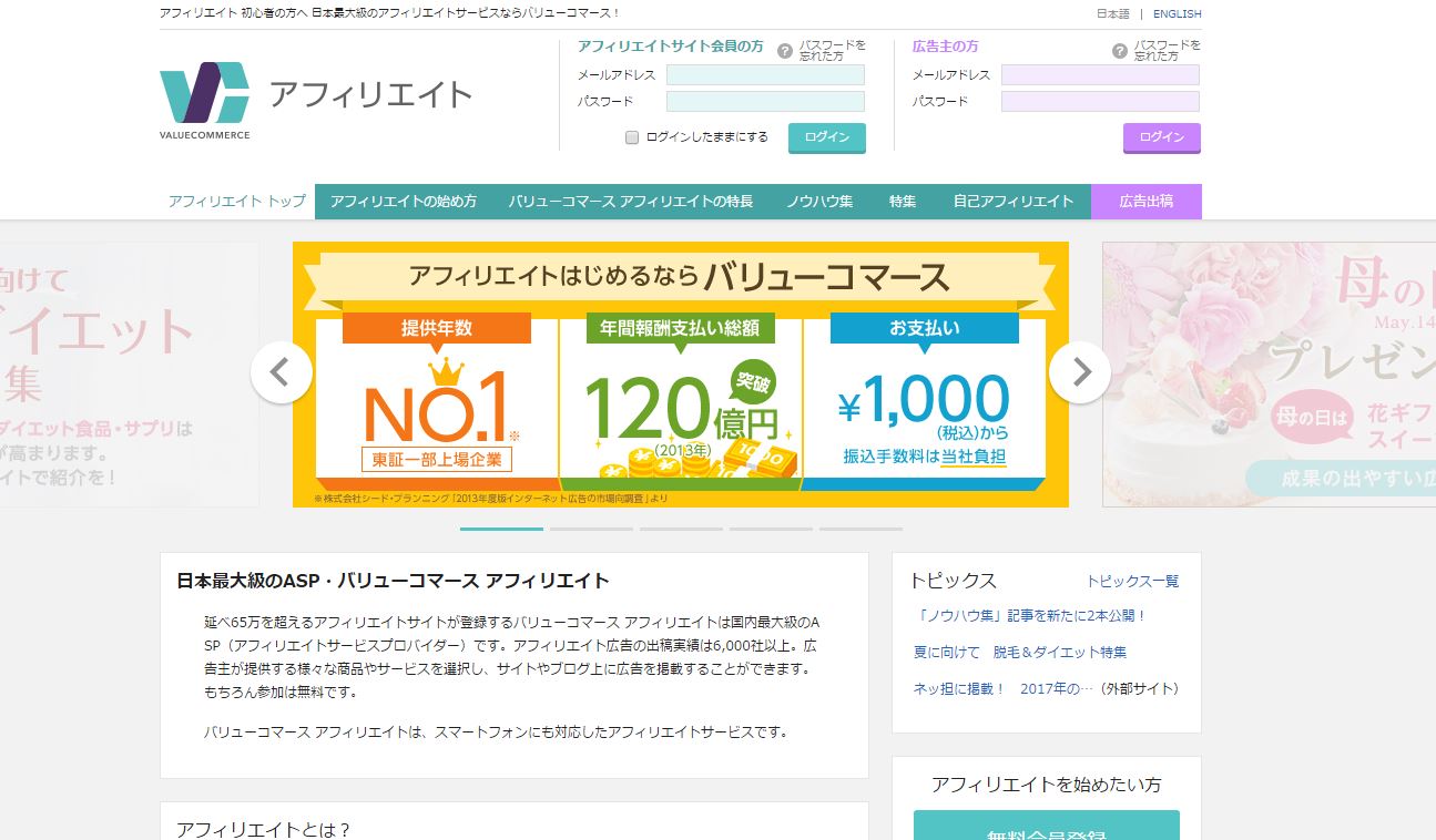 | サイト名 | アフィリエイト(ASP)ならバリューコマース アフィリエイト |