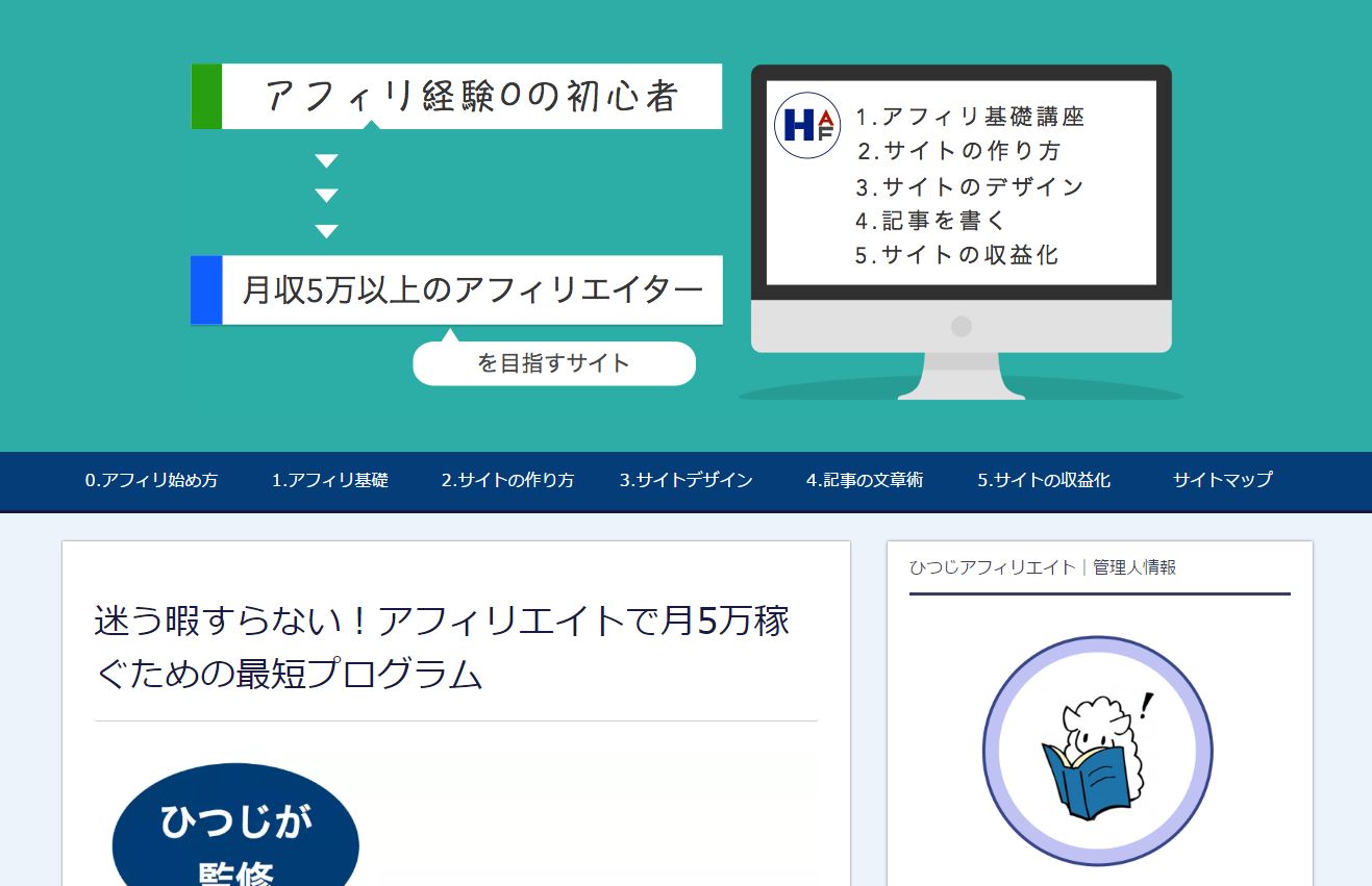| サイト内容 | アフィリエイトを始めたいけれど、始め方・やり方がわからない。。そんな初心者さんを支援するサイ トが当サイトです。「ひつじくん」「おおかみくん」の2人とともに、まずは月5万稼ぐための方法を解 説しています。 |