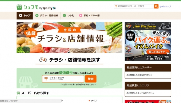 | サイトキーワード | チラシ,スーパー,店舗,シュフモ,ニフティ,@nifty |