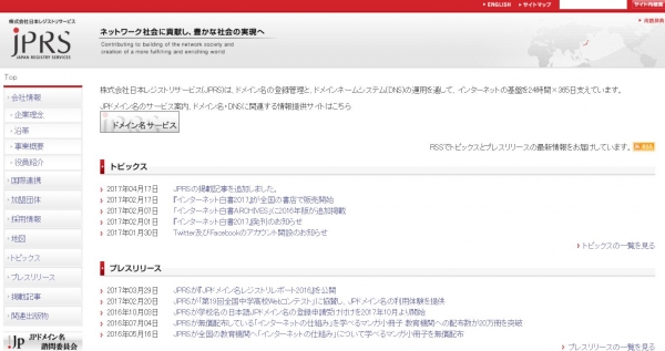 | サイト名 | 株式会社日本レジストリサービス(JPRS) |