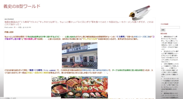 | サイト名 | 義史のB型ワールド | 管理人さんの摩訶不思議な日常と代理人のB級グルメな毎日を書いとり ます。 |