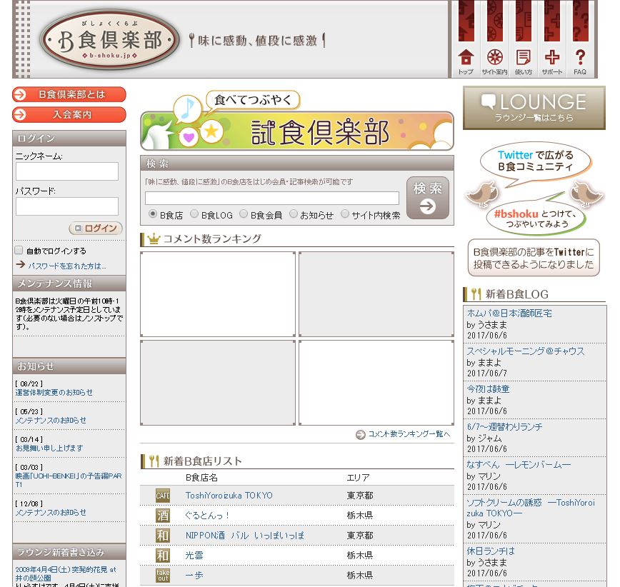 | サイト内容 | 味に感動、値段に感激。B食倶楽部は本物の食を探求する人のための無料ブログコミュニティ サイトです。 |
