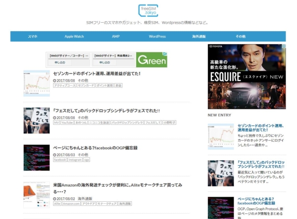 | サイトキーワード | SIMフリーのスマホやガジェット、格安SIM、Wordpressの情報などなど。 |