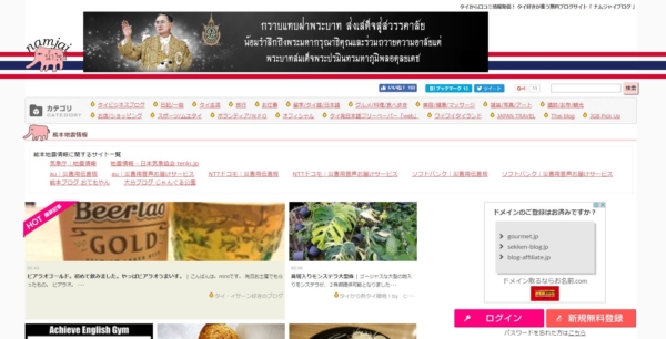| サイト内容 | タイから口コミ情報発信! タイ好きが集う無料ブログサイト「 ナムジャイブログ 」 |