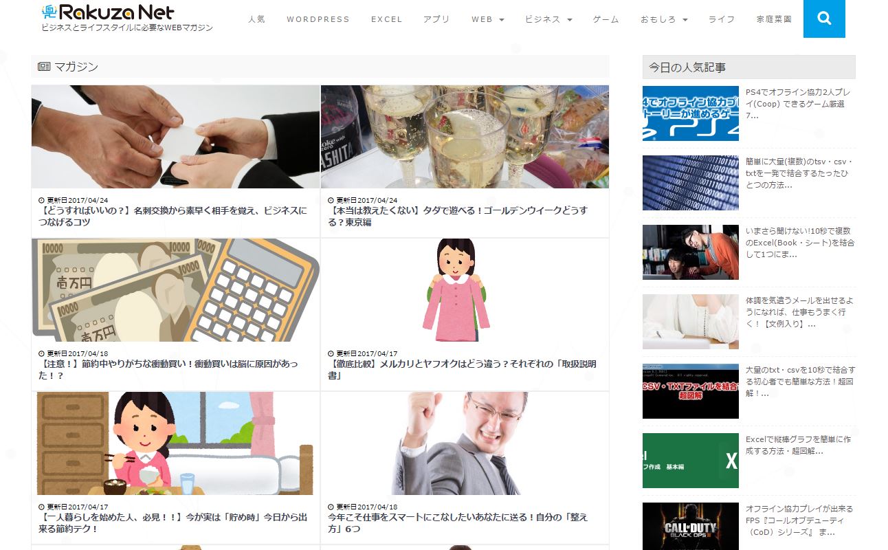 | サイトキーワード | Wordpress,Excel,ライフハック,ゲーム,おもしろ動画 |