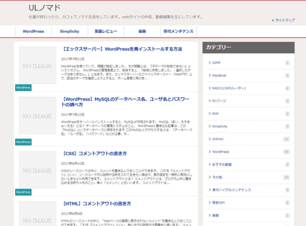 | サイト名 | ULノマド | 仕事が終わったら、カフェでノマド生活をしています。webサイトの作成、動画編集を主にしています。 |