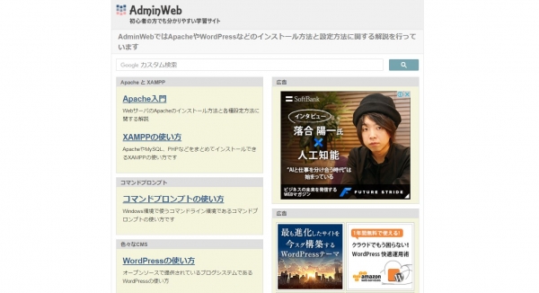 | サイト名 | ApacheとWordPressの解説ならAdminWeb |