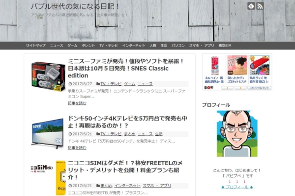 | サイト名 | バブル世代の気になる日記! | アラフィフ父さんの最近話題の気になる「出来事や話題」を! |