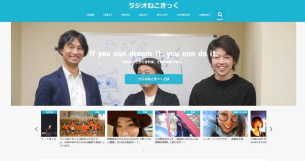 | サイト名 | ラジオねこきっく | FM13局+サーマル放送、AbemaTVFreshで 放送中のラジオ番組。あなたの夢を応援するラジオ番組。ラ ジオゲストやスポンサーも募集中です。 |
