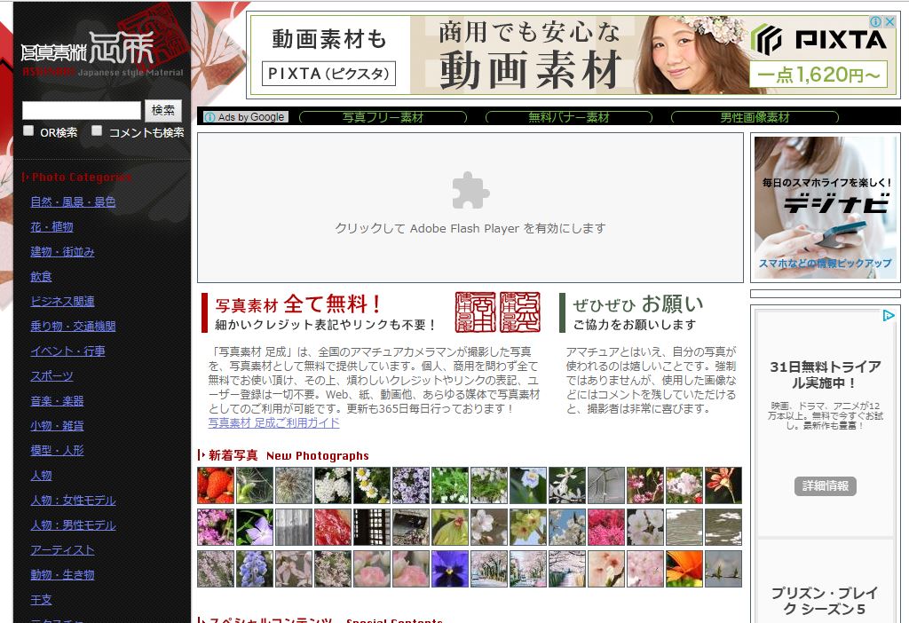 | サイト名 | 写真素材 足成【フリーフォト、無料写真素材サイト】 |