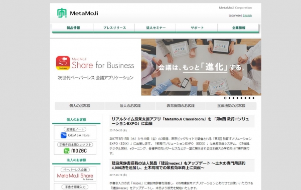 | サイト内容 | 株式会社MetaMoJi(メタモジ)のウェブサイトです。iPhoneやiPad、Android端末向けアプリケーションの製品情報や、サポート情報、企業情報などを掲載しています。 |