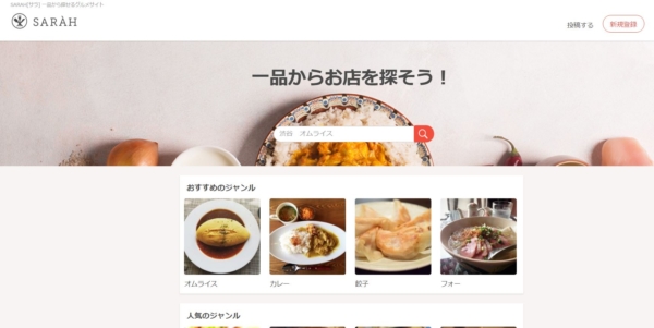 【40万PV】SARAH[サラ] 料理メニューから探せるグルメサイト