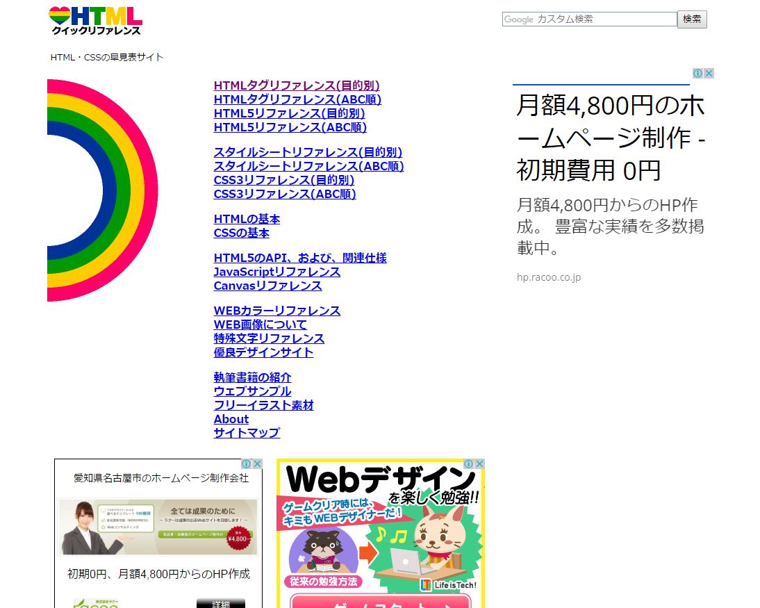 | サイト名 | HTML・CSSの早見表サイト HTMLクイックリファレンス |