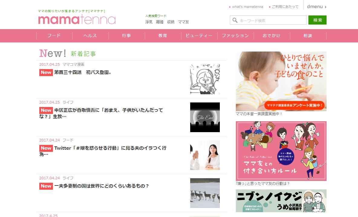 | サイト名 | ママ向け情報が豊富!育児のヒントがあるママテナ | mamatennaママの知りたいが集まるアンテナ「ママテナ」 | mamatenna |