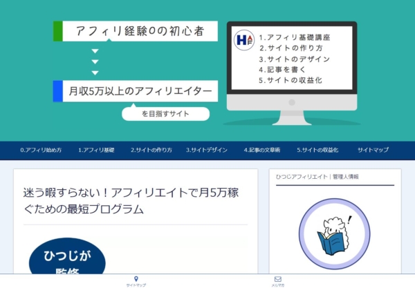 | サイト名 | アフィリエイトの始め方|初心者が月5万稼ぐ方法をすべて公開! |