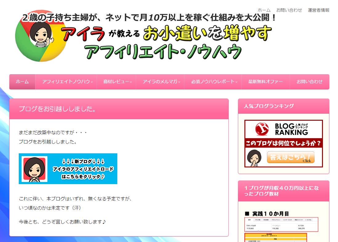 | サイト名 | お小遣いを増やすアフィリエイトノウハウ~アイラのブログ~ |