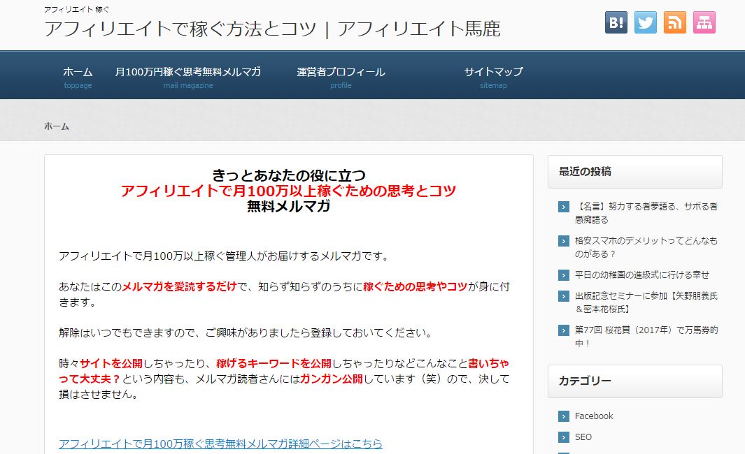 | サイト名 | アフィリエイトで稼ぐ方法とコツ | アフィリエイト馬鹿 |