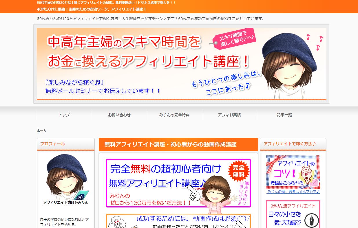 | サイト名 | 40代50代に最適!主婦のための在宅ワーク、アフィリエイト講座! |