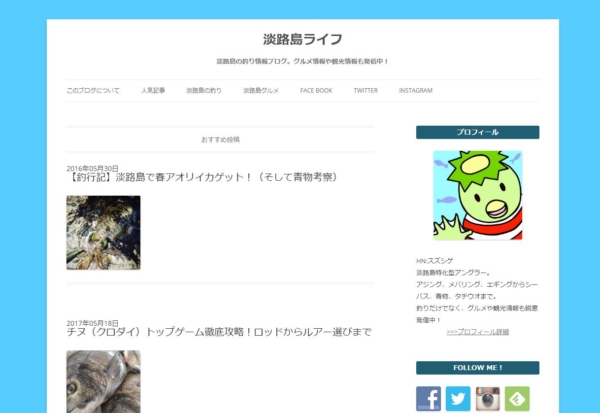 | サイト内容 | 淡路島での陸っぱりルアーフィッシングを中心に、島内のグルメ情報や観光情報を発信します。 |