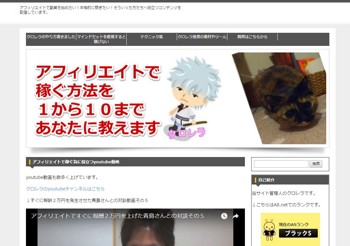サイト内容  こんにちはクロレラです。アフィリエイトにおける基礎基本は本当に重要なのですが、何時までの稼げない人ほどその基礎基本を軽視しています。たまにアフィリエイト初心者さんのサイ トを見る事があるのですが、