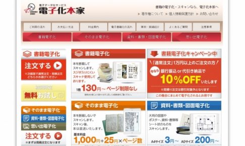 主要データ サイト名 自炊代行・電子書籍化・PDF化なら電子化本家 サイト内容 書籍の断裁と電子化サービスを提供しております電子化本家です。大切な蔵書をていねいに電子書籍化いたします。 サイトキーワード 自炊代行,…