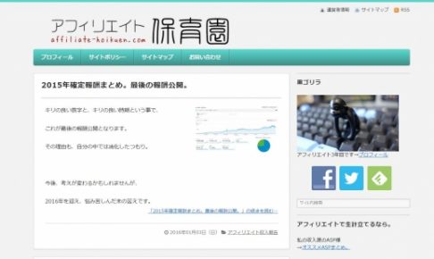 主要データ サイト名 アフィリエイト保育園 サイト内容 WordPressでアフィリエイトサイト運営してます。へっぽこアフィリエイターです。 サイトキーワード サイトURL http://affiliate-hoik…