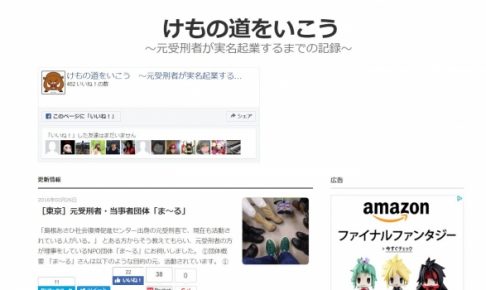 主要データ サイト名 けもの道をいこう サイト内容 ~元受刑者が実名起業するまでの記録~ サイトキーワード サイトURL http://kemonomichiwoikou.blog.jp/ 総訪問数/月 4万 平…
