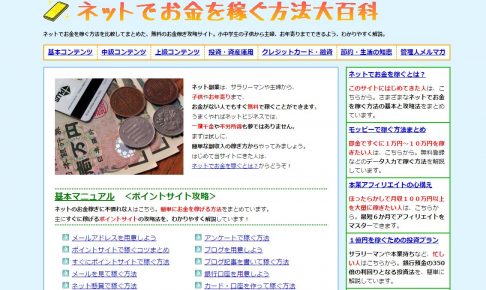 主要データ サイト名 ネットでお金を稼ぐ方法大百科 | ネットで儲けてお金持ちになる! サイト内容 ネットでお金を稼ぐ方法をあつかう情報総合サイト。パソコンとインターネットでできる様々なお金稼ぎの方法を徹底解析、初心…