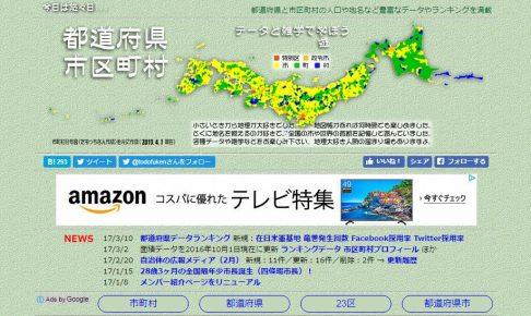 主要データ サイト名 都道府県市区町村 サイト内容 都道府県市区町村に関するデータ満載。都道府県データ、市区町村データ、人口、面積、人口密度、公式HP、公式twitter、公式Facebook、明治の市制・町村制以降…