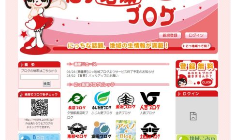 主要データ サイト名 ブログポータルなら – にっ地域ブログ – 会員続々増加中!! サイト内容 地域情報のブログはにっ地域で! サイトキーワード 地域,ブログ,情報,作成,無料 サイトUR…