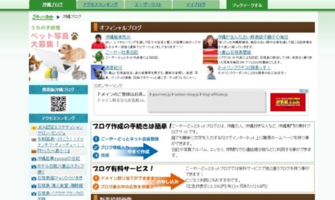 主要データ サイト名 ごーやーどっとネット沖縄ブログ サイト内容 沖縄専門のブログサイト サイトキーワード 沖縄,OKINAWA,掲示板,情報,観光,音楽,車・バイク,風景,写メール サイトURL http://…