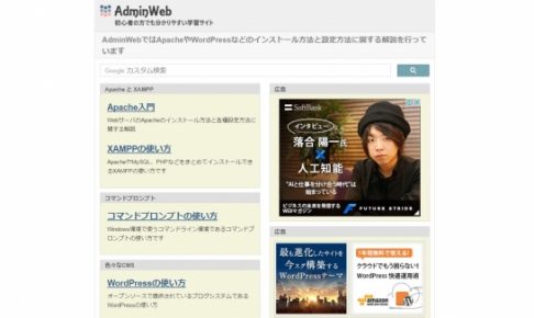 主要データ サイト名 ApacheとWordPressの解説ならAdminWeb サイト内容 ApacheやWordPressのインストールと環境設定の方法、そして設定や利用方法について解説します。 サイトキーワード…