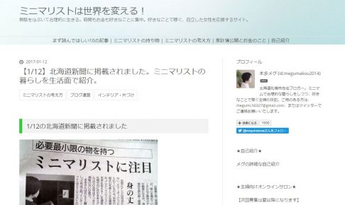 主要データ サイト名 ミニマリストは世界を変える! サイト内容 無駄をはぶいて合理的に生きる。時間もお金も好きなことに集中。好きなことで稼ぐ、自立した女性を応援するサイト。 サイトキーワード サイトURL http…