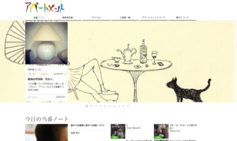 主要データ サイト名 アパートメント サイト内容 ウェブマガジン「アパートメント」。ひとりひとりがそれぞれの毎日を営みながらときどき 誰かと関わっている。そんな世界の小さな、あたたかい縮図であれたらという願いを込めて…