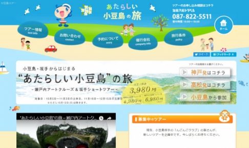 主要データ サイト名 あたらしい小豆島の旅|瀬戸内アートクルーズ&坂手ショートツアー サイト内容 坂手のまち歩きや洞雲山・碁石山観光・そうめん箸わけ体験・醤油蔵見学・ジャンボフェリー操縦室見学など1日で小豆島を満喫で…
