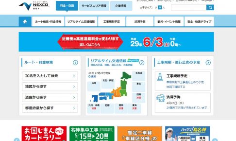 主要データ サイト名 NEXCO 西日本 サイト内容 お客さま、地域、社会に貢献する西日本高速道路株式会社のサイトです。料金検索、リアルタイムな交通情報、工事の予定など高速道路をご利用になる際、必要な情報を掲載してい…