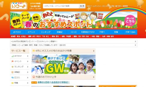 主要データ サイト名 子供とお出かけ情報「いこーよ」 サイト内容 子供とお出かけ情報サイト「いこーよ」は、親子で平日にお出かけできる遊び場、連休や週末のファミリー向けイベント情報が満載! おむつ替え台や授乳室、ベビーカ…