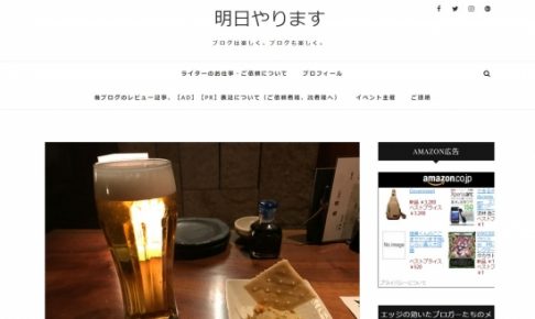 主要データ サイト名 明日やります サイト内容 フリーライター・ブロガー・ブロガーイベント運営、主催をしている奥野大児のメインブログ。スマホ、お出かけ、グルメ、バイク、将棋、麻雀、ブログなど大好きなことをまとめたブロ…