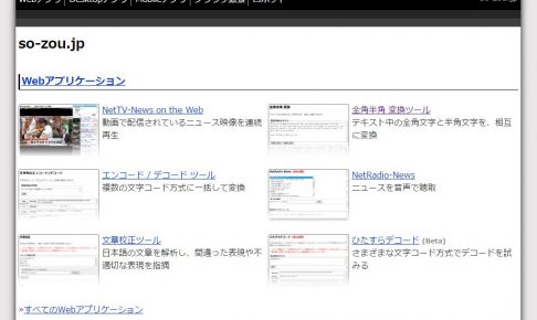 主要データ サイト名 so-zou.jp サイト内容 省力化のためのツールを提供しています。そして新しいものを創りだす一助になることを願い、それの開発に要した技術も公開しています。 サイトキーワード サイトURL …