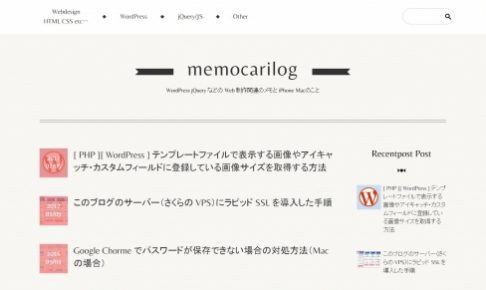 主要データ サイト名 memocarilog|WordPress jQuery などの Web 制作関連のメモと iPhone Macのこと サイト内容 WWordPress jQuery などの Web 制作関連の…