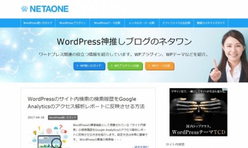 主要データ サイト名 WordPress神推しブログのネタワン サイト内容 ワードプレスやブログ運営に役立つ情報をまとめています。WordPressプラグイン、WordPressテーマ(テンプレート)の情報をわかりや…