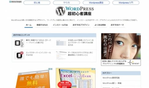 主要データ サイト名 WordPress超初心者講座 WordPressの使い方を解説する入門サイト。ワードプレス超初心者の方に向けて、インストール方法やテーマ・プラグインによるカスタマイズ手順などを紹介。 サイト内…
